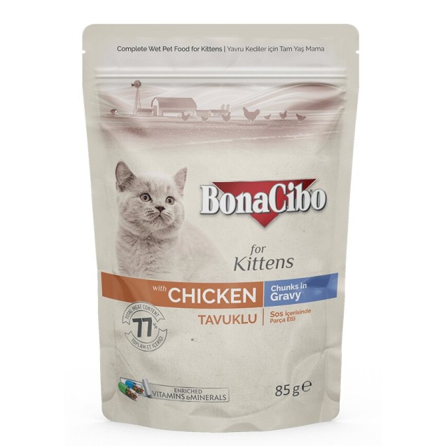 BonaCibo for Kittens with Chicken, cu pui în sos pentru motănei, 85 g