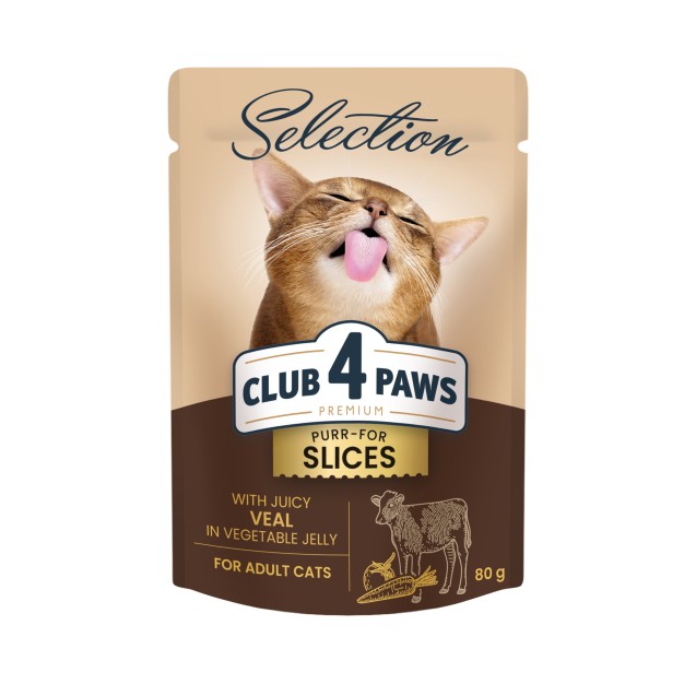 Club 4 Paws Selection Slices with Veal, cu vițel în jeleu de legume pentru pisici, 80 g (12 bucăți)