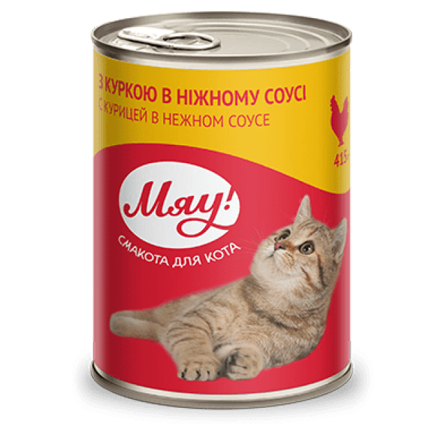 Conserve pentru pisici "Мяу!" este o parte de neînlocuit a unei diete sănătoase complete a unei pisici adulte. Dezvoltate conform tehnologiei franceze, conservele au primit standardul european de calitate. Mâncarea umedă oferă corpului animalului de companie cantitatea necesară de substanțe nutritive, vitamine și oligoelemente, ajută la activarea metabolismului, îmbunătățirea poftei de mâncare, dezvoltarea unei linii de păr sănătoase și a creșterii fizice.