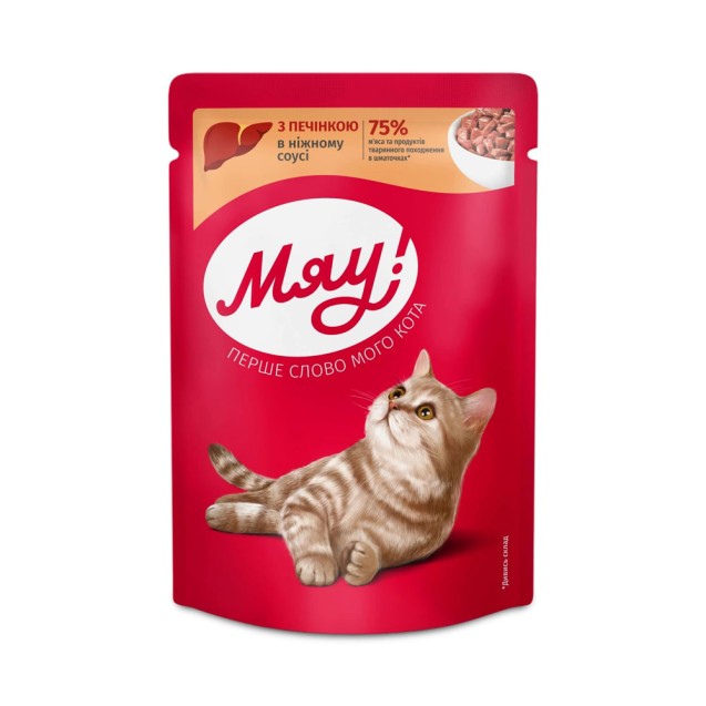 "Мяу!" Conserve de ficat într-un sos delicat pentru pisici adulte combină bogăția gustului și doza optimă de energie pentru fiecare zi.