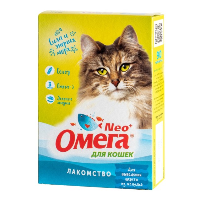 Omega Neo+ "Для выведения шерсти из желудка", supliment vitaminic pentru pisici, 90 tablete