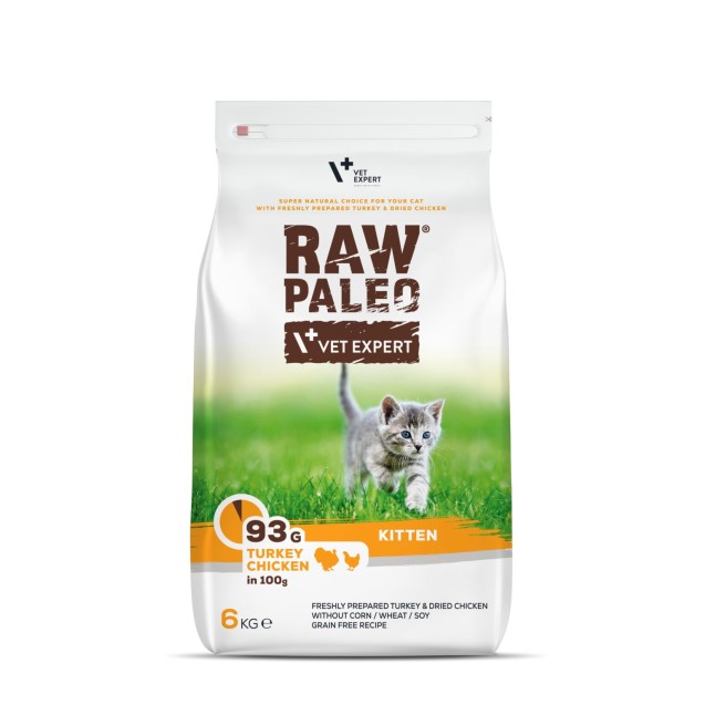 Raw Paleo Kitten, cu curcan și pui pentru motănei, 6 kg