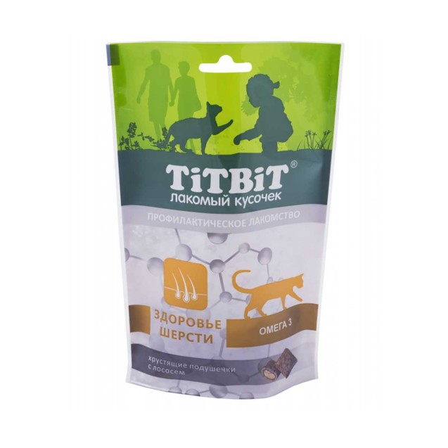 TiTBiT Pernuțe crocante cu carne de somon pentru bunăstarea blănii la pisici 60 g