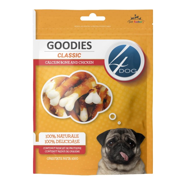 4DOG Goodies Classic Calcium Bones and Chicken, recompense pentru câini, 100 g