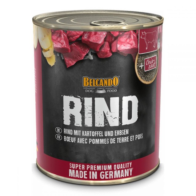 Belcando Rind - hrană umedă completă pentru câini, cu vită, cartofi și mazăre.