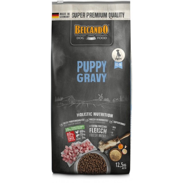 Materiile prime atent selecţionate bogate în carne de pasăre, orez şi ou fac hrana BELCANDO® Puppy Gravy să fie bine tolerată şi uşor digerabilă. Un nivel ridicat de energie pentru o creştere sănătoasă şi minerale importante pentru formarea oaselor asigură un start optim în viaţă. Atunci când hrana uscată este amestecată cu apă caldă se formează imediat un sos delicios, ce încurajează căţelul să mănânce hrană solidă şi uşurează înţărcarea. Şi este o plăcere binevenită şi pentru mai târziu, deasemenea!
