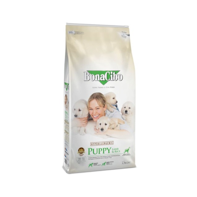 BonaCibo Hypoallergenic Puppy Lamb&Rice, cu miel și orez pentru căței, 15 kg