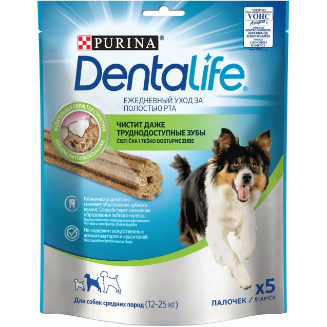 Purina Dentalife pentru câini de talie medie 12-25 kg (5 bastoane) 115 g