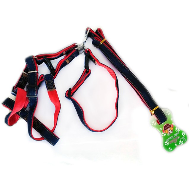 Lesă + Ham + Zgardă (blugi) 1cm x 1,2m - diferite culori