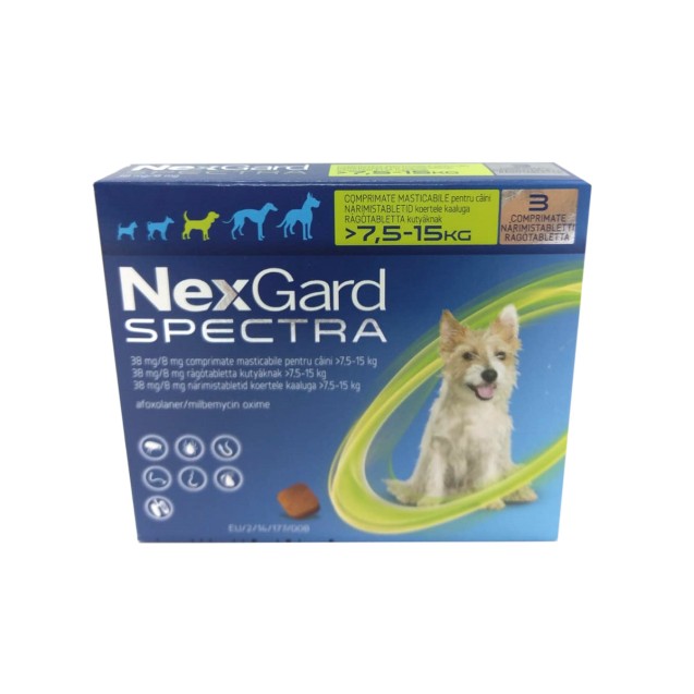 NEXGARD SPECTRA poate fi utilizat ca tratament preventiv sezonier împotriva puricilor și căpușelor (înlocuind tratamentul cu un produs monovalent cu acțiune numai împotriva puricilor și căpușelor) la câini infestați concomitent și cu nematode gastrointestinale. Un singur tratament este eficace împotriva nematodelor gastrointestinale. După tratarea infestațiilor cu nematode, tratamentul împotriva infestațiilor cu purici și căpușe poate fi continuat prin aplicarea produsului monovalent.