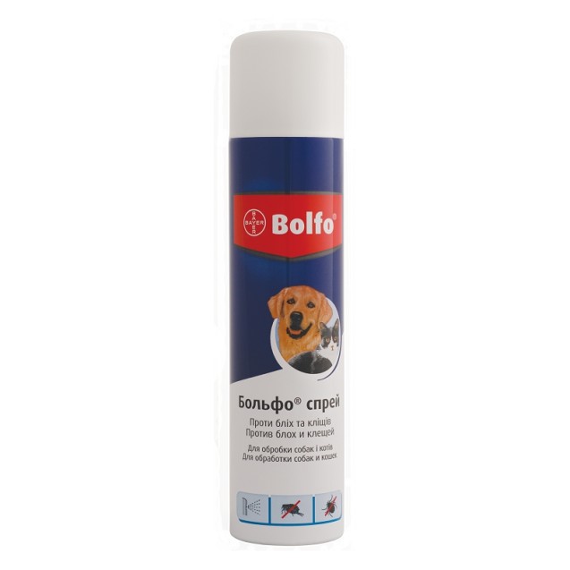 Spray Bolfo este utilizat pentru tratarea câinilor și pisicilor cu entomoză și căpușe ixodide.