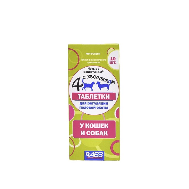 Четыре с хвостиком, pastile pentru reglarea estrului la pisici și câini, (10 bucăți)