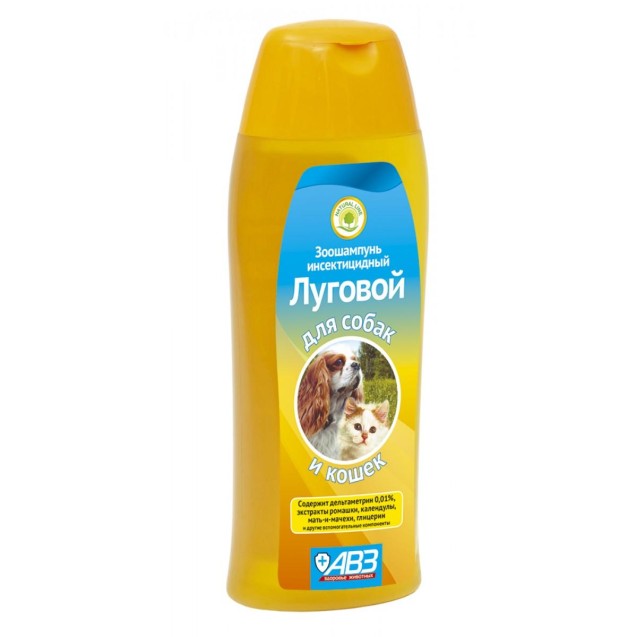 Луговой - șampon antiparazitar este utilizat pentru tratarea câinilor și pisicilor cu entomoze cauzate de purici, păduchi și păduchi.